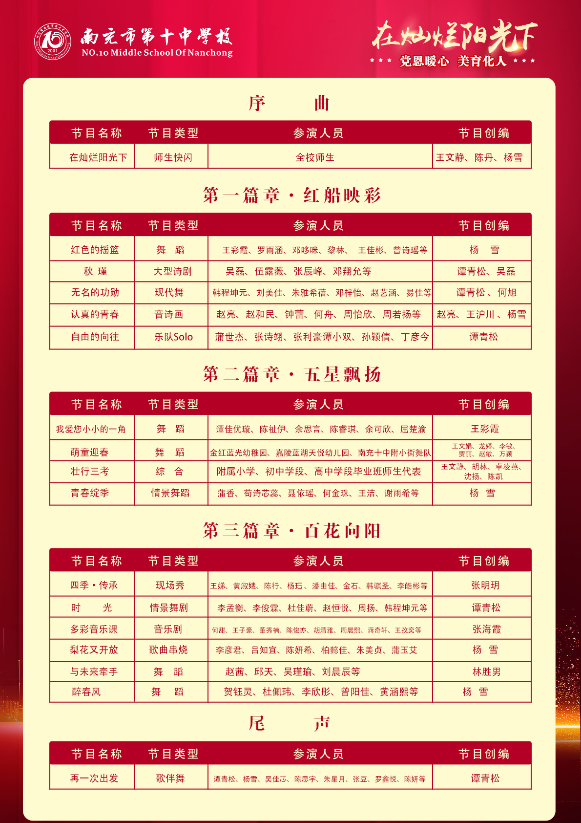 下面,让我们一睹本次“十中春晚“的详细节目单吧...